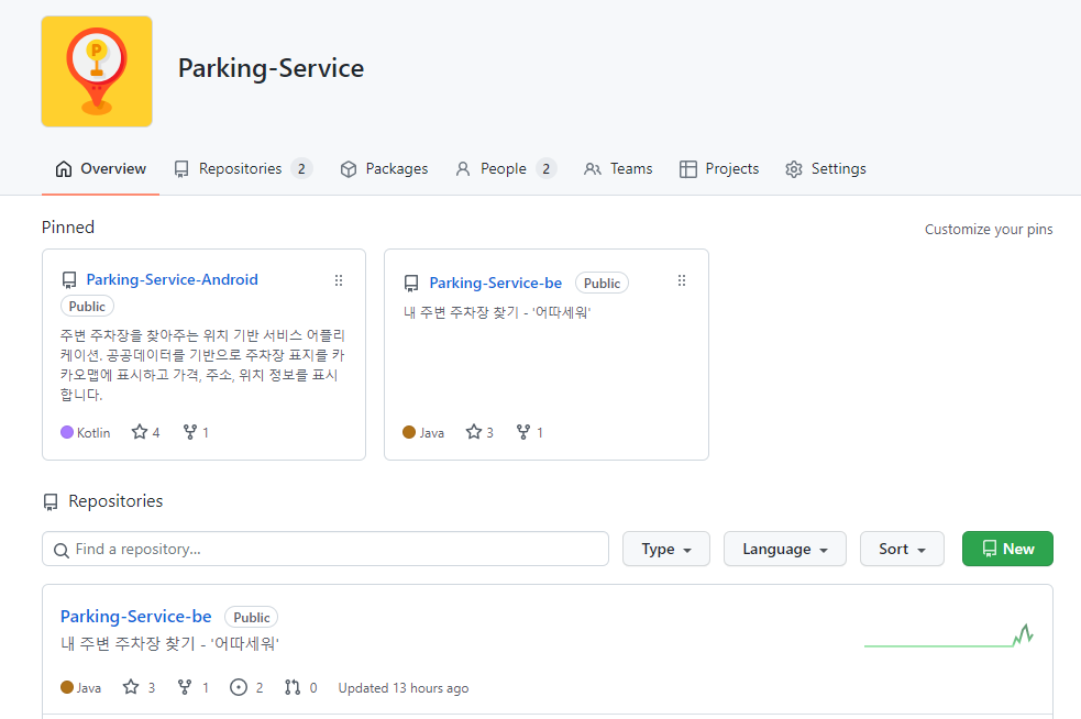 여기서 해당 프로젝트에 대한 Organization 을 만들고 이 레퍼지토리는 Setting에서 Organization으로 옮겨줄 것입니다.