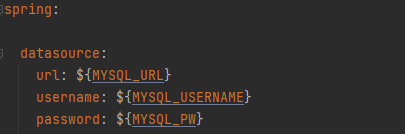 이제 secrets Manager에 넣었던 값을 application.yml에 ${KeyName} 형태로 값을 넣어두면
