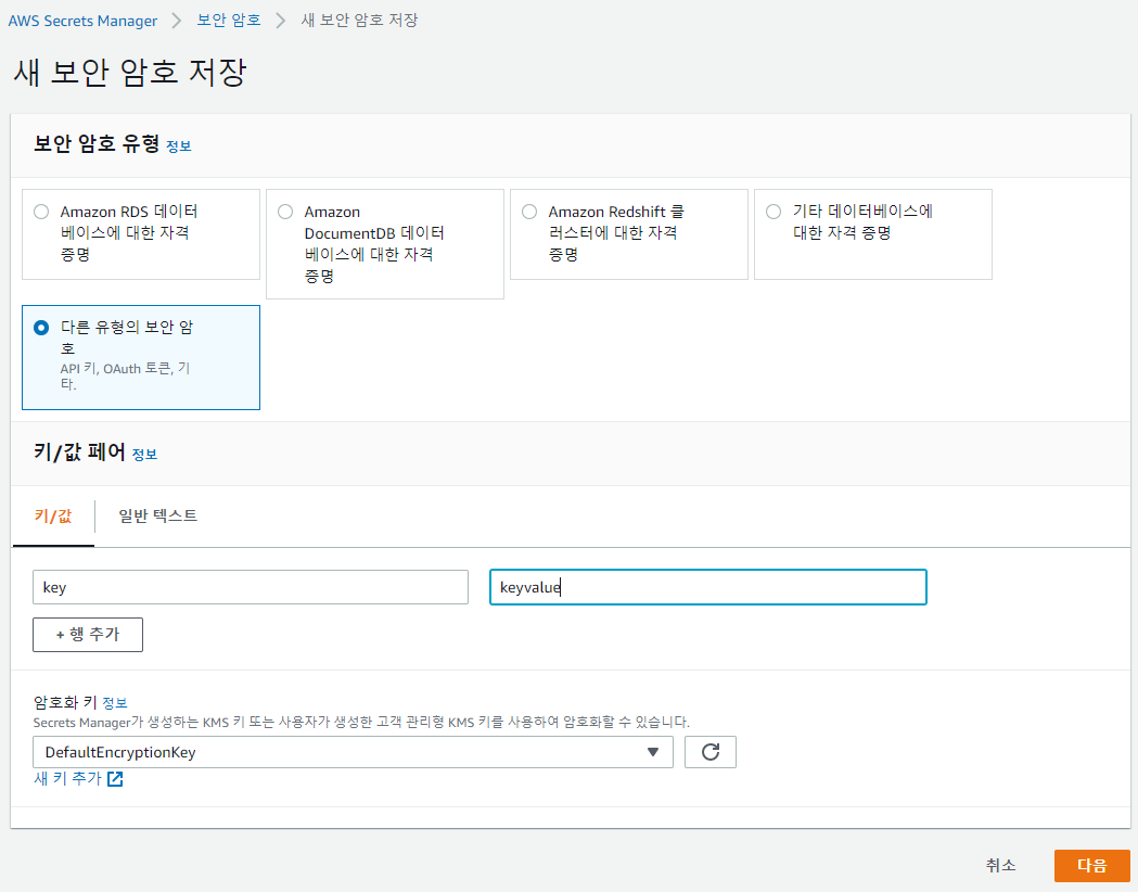시크릿매니저는 AWS에 프로젝트의 주요 키를 담아두고 관리할 수 있도록 도와주는 서비스이다.