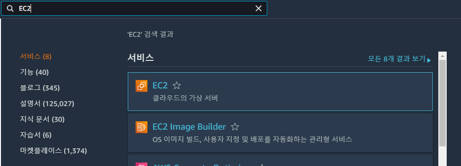 AWS 접속 후에 EC2 검색한다.