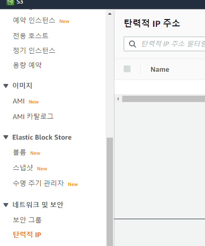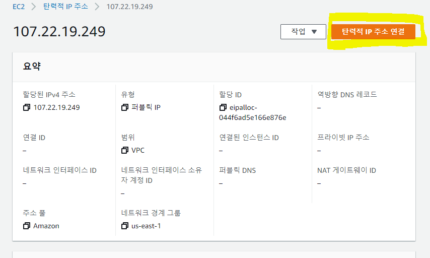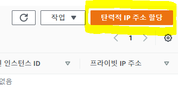 이 곳을 채우기 위해 아까 생성한 인스턴스에 탄력적 IP 주소를 연결시켜야한다.