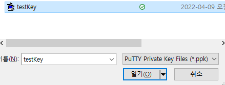 생성했던 ppk파일 선택