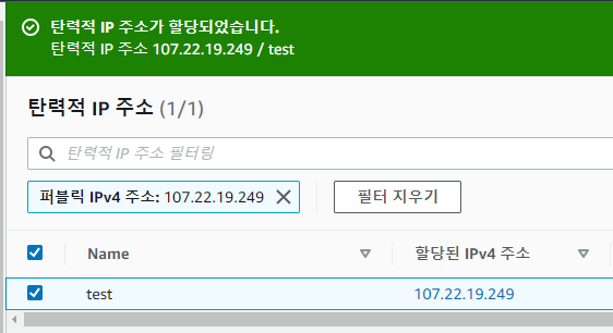 그렇게 생성된 test라는 이름의 탄력적 IP 주소.