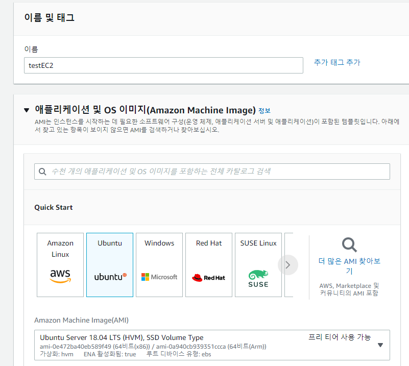 EC2 환경의 이름 / OS 를 선택한다.