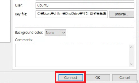 입력했다면 다음으로 Browse를 클릭하여 ppk파일을 입력해주어야 한다.