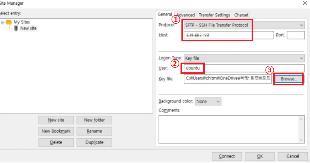 2번인 User에는 내 EC2 인스턴스가 Ubuntu이기 때문에 기본값인 ubuntu를 입력해주었다.