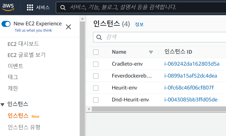 EC2에 접속하여 인스턴스에 들어와 접속하고자 하는 인스턴스를 확인한다.