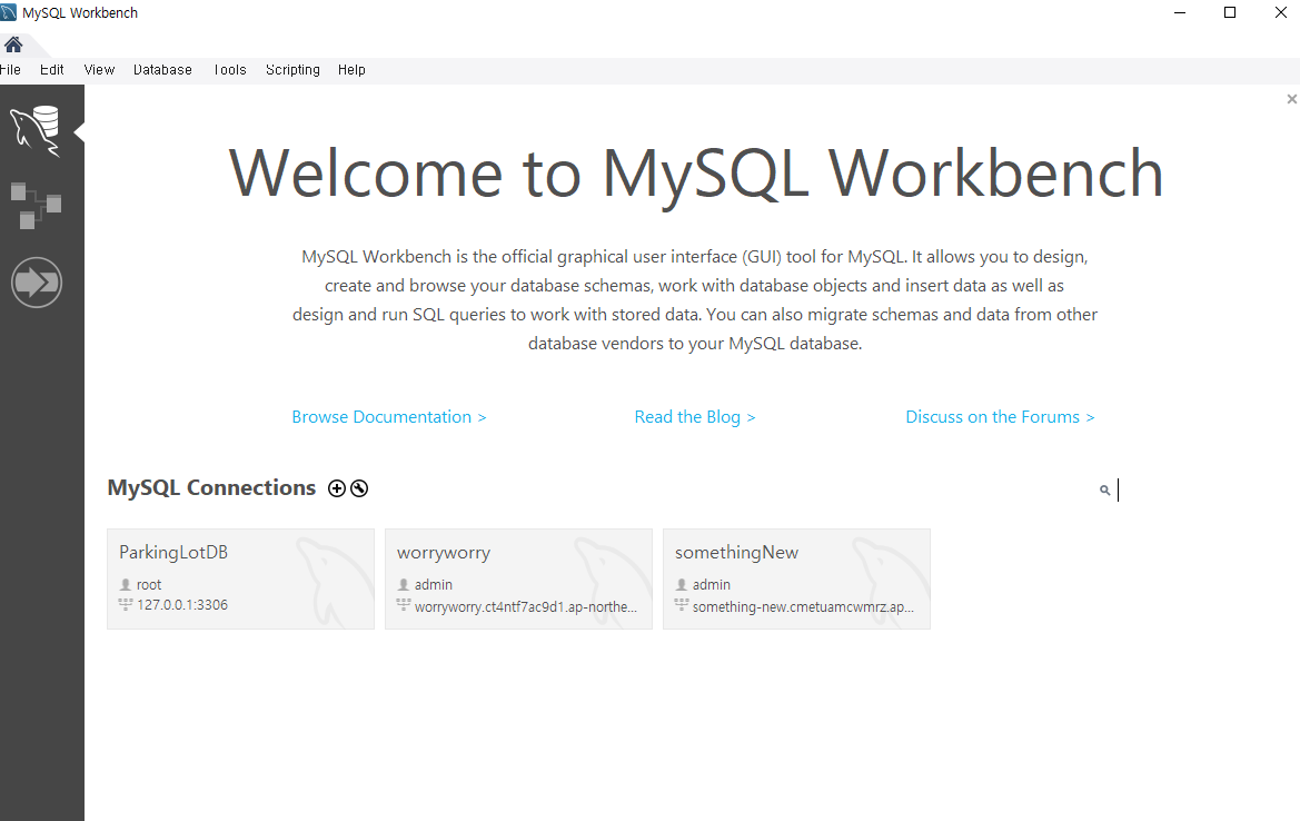 새로 설치하신 분들은 +버튼을 눌러 DB에 연결해주면 된다.