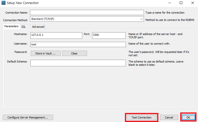 Connection Name : Connection명으로 자기가 알기 쉬운 이름으로 입력해주면 된다.