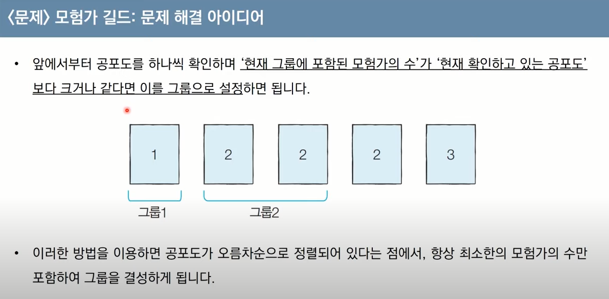 count = 0 #현재 그룹에 포함된 모험가의 수