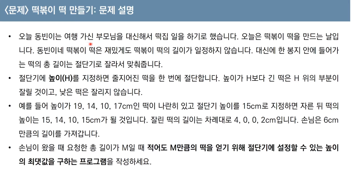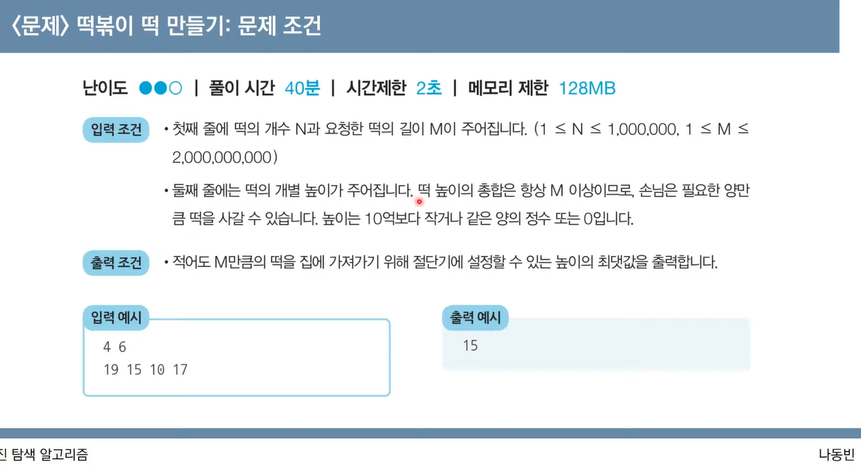 # 떡의 개수(n)와 요청한 떡의 길이(m)를 입력