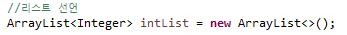 초기화는 ArrayList<자료형> 리스트명 = new ArrayList<>(); 로 할 수 있다.
