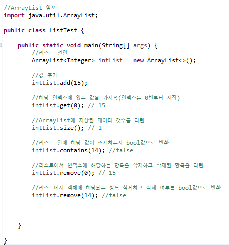 사용하기 위해선 java.util.ArrayList 를 import 해야한다.