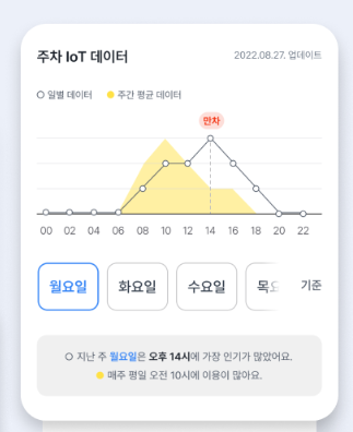 심사위원님들께 비맵의 서비스 중, 요일별 장애인 주차구역 주차 차량수 예측의 UX/UI에 관한 질문을 받았다.