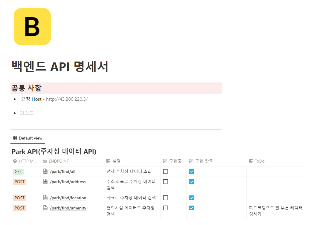 필요하신 기능을 요청받아 노션에 API 명세서를 먼저 작성하였다.