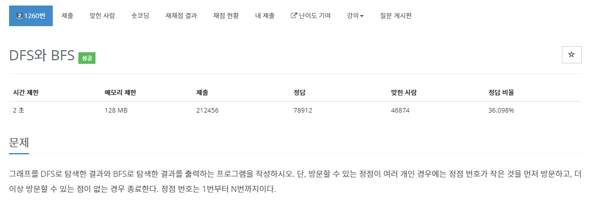 아마 낮은 정답률의 원인이 정점 번호가 작은 것을 먼저 방문하는 것 때문인 거 같다.
