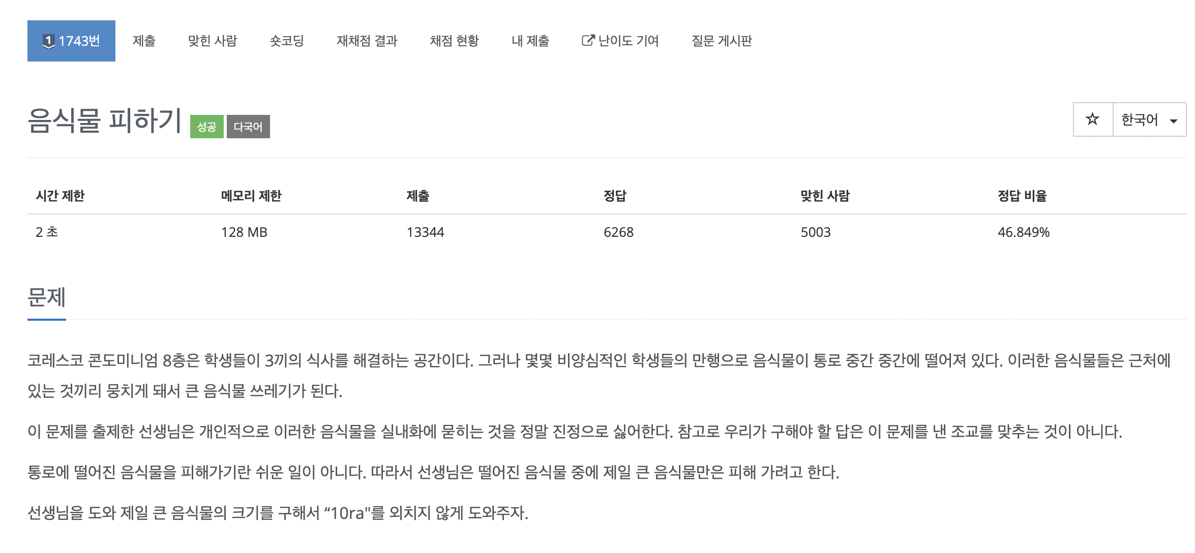 음식물 피하기는 어떤 가장 큰 음식물 쓰레기의 사이즈를 구하는 문제이다.