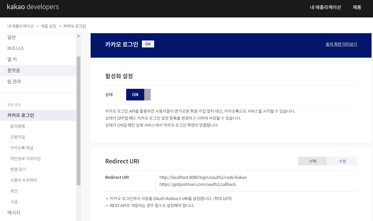 포스트맨에서 테스트를 하기 위함에 따라 Redirect URI를 하나 추가해주어야 한다.